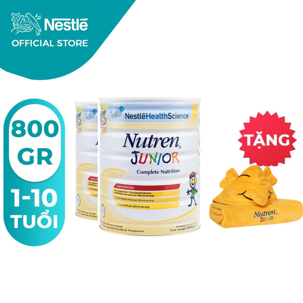 [Tặng 01 Khăn choàng tắm] Combo 2 lon Sữa bột Nutren Junior 800g/lon